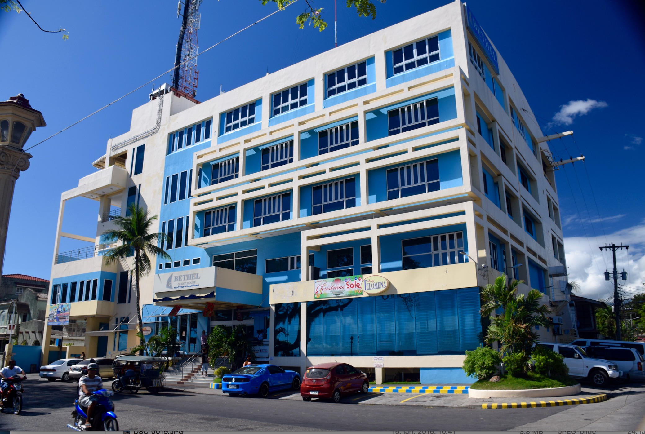 Bethel Guest House het vår residence da vi var her i januar 2016, og vi hadde seaview-deluxerom i øverste etasje. Flott utsikt herfra, men dessverre noe utsatt for trafikkstøy. Mulig et rom vendt opp mot resten av byen hadde vært bedre sånn sett. Hotellet hadde stabil internett, enkel og bra kafeteria i første etasje med geniuen ren mat uten for mye sukker og fett. Hyggelig og serviceminded betjening. Genial by, ren og ryddig, flott og bred boulevard langs sjøen hvor folk samlet seg på ettermiddag kveld, yrende folkeliv. Levende musikk på restaurantene, meget behagelig prisnivå. Vi koste oss med byen og tok ingen turer rundt. Her fant jeg virkelig roen. Så langt er dette min favoritt på Filippinene.