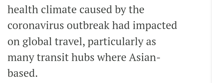 Utenfor Hubei har de vel meldt nedgang i lengere tid.Ellers melder Fks Singapore Airline om reduksjon i avganger mellom Asia og både Amerika og Europa. Bla Paris og London ,.Uten at det sto noe om fra hvilke avgangsteder.