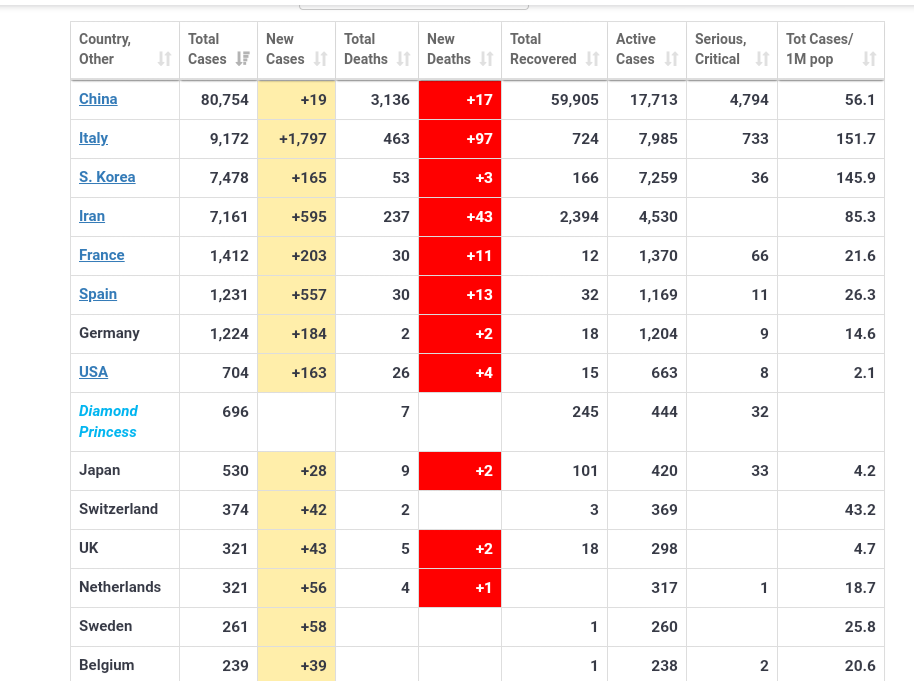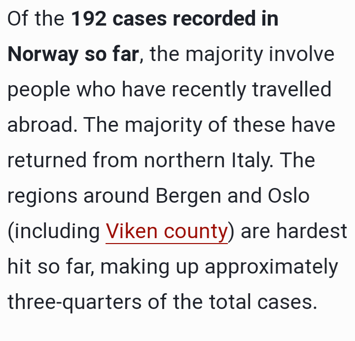 Wuhan ,Korea, Italia og Iran. Resten regner de som småbranner som kan lett slukkes tror jeg. Så ellers et intervju med han ene som var i Kina , Han hadde kontakt med de ennå og fortalte at,det vistnok er noen fengsler som de stadigvekk har små utbrudd i.