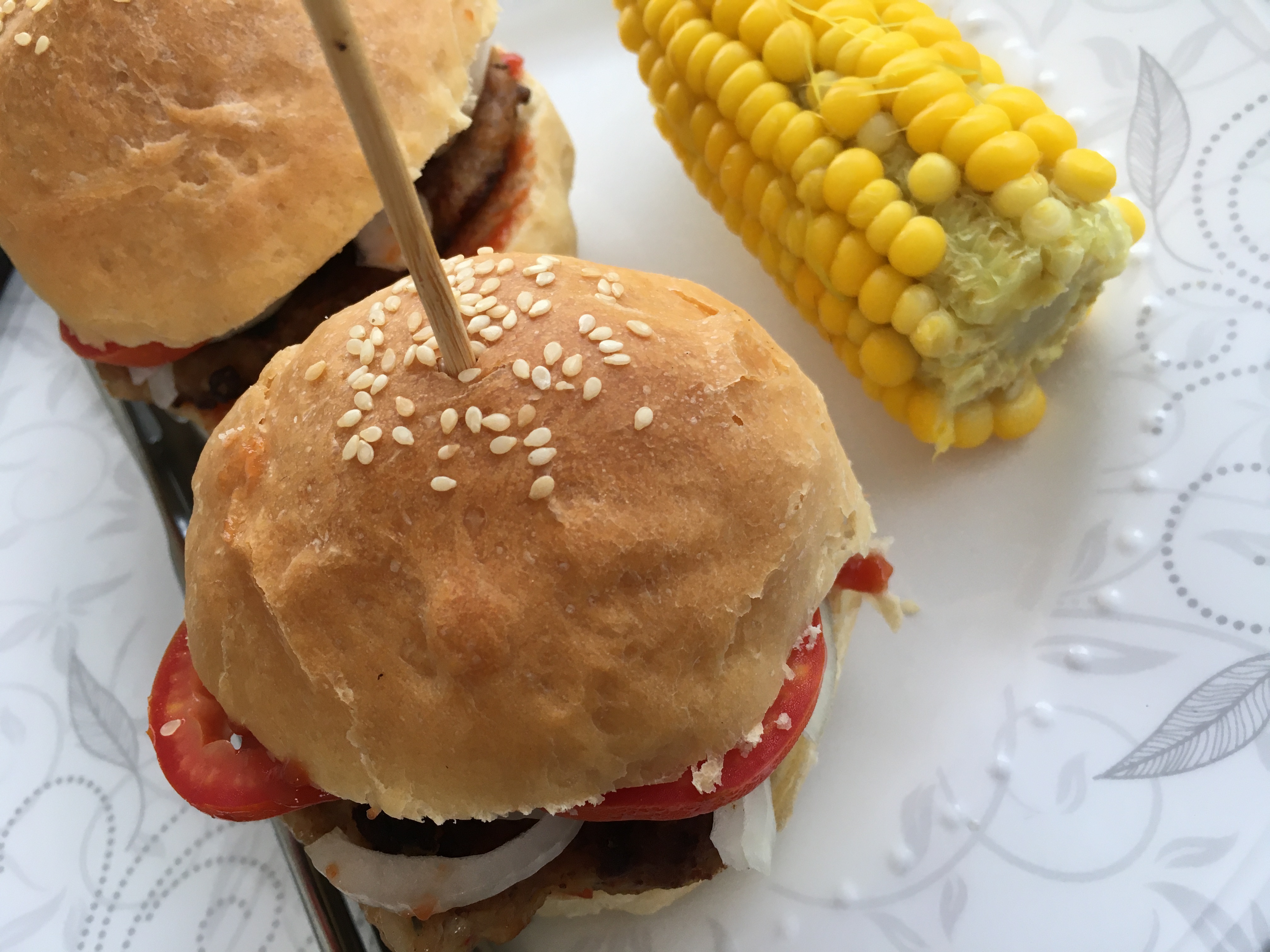 Dagens overskudd av grønt for med gårsdagens middag og egenprodusert mais, og dagens middag.