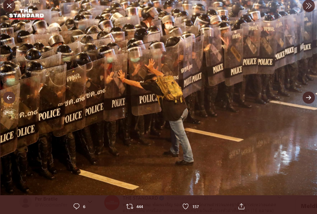 At 11:50 PM on October 16, 2020, Mr. Anucha Buropchaisri, a spokesman for the Prime Minister's Office, revealed that Gen. Prayut Chan-o-cha, Prime Minister and Minister of Defense, would like to thank all officials. All groups of people And protesters cooperating with government officials to stop protests yesterday, the government issued a declaration of a serious emergency for public order in Bangkok. But there were still gatherings in the early evening The government therefore needs to take appropriate action to enforce the law. In performing the duties of a police officer this time It is performed using equipment and procedures in accordance with international principles in all respects. The first step was the announcement of the request for cooperation to the masses to stop the assembly and leave the area But after that failed The police therefore needed to use a method of spraying water mixed with harmless colors. (To confirm the identity of the group of participants)