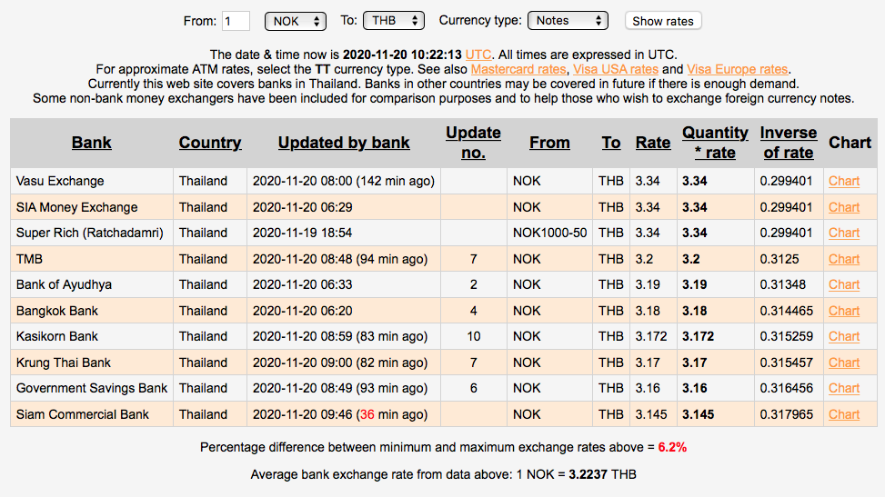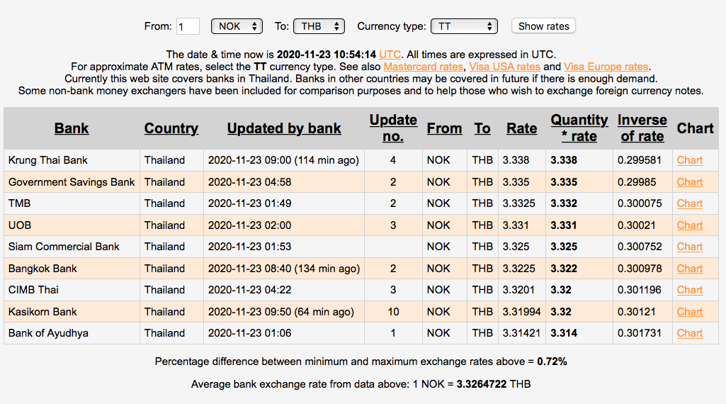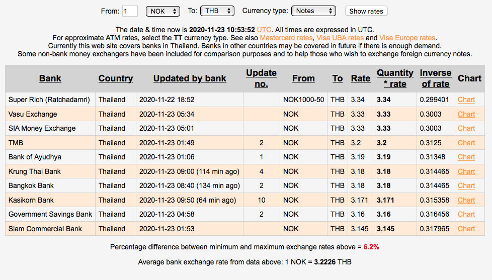 Da hadde Krung Thai Bank beste kurs på TT overføring. Bank of Ayudhya hadde den dårligste kursen, og alle kursene er i skrivende stund.......