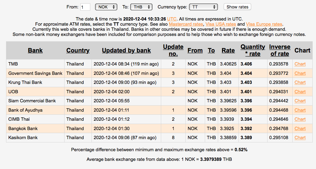Da hadde Krung Thai Bank beste kurs på TT overføring. Bangkok Bank hadde den dårligste kursen, og alle kursene er i skrivende stund.......