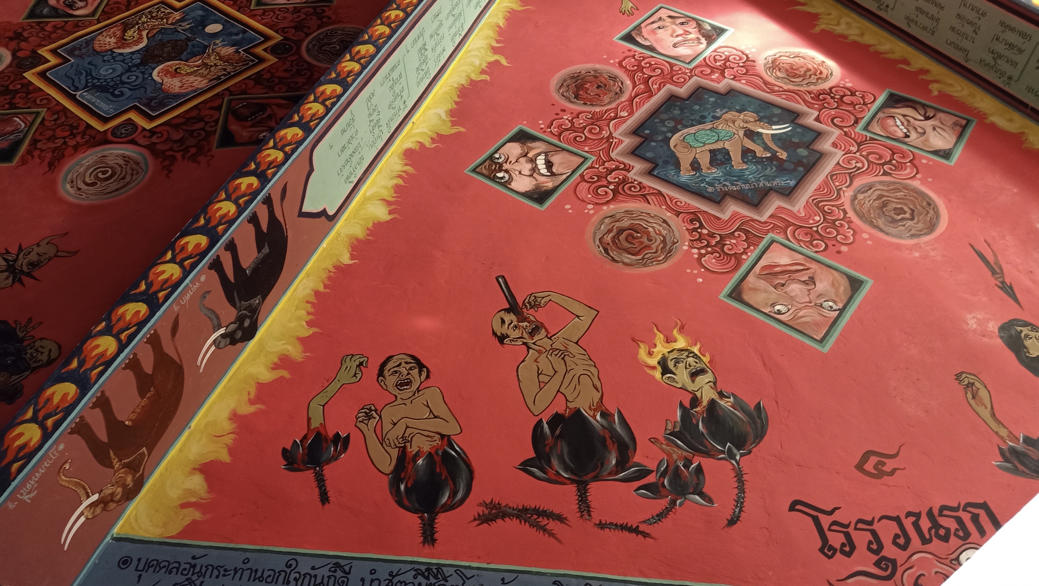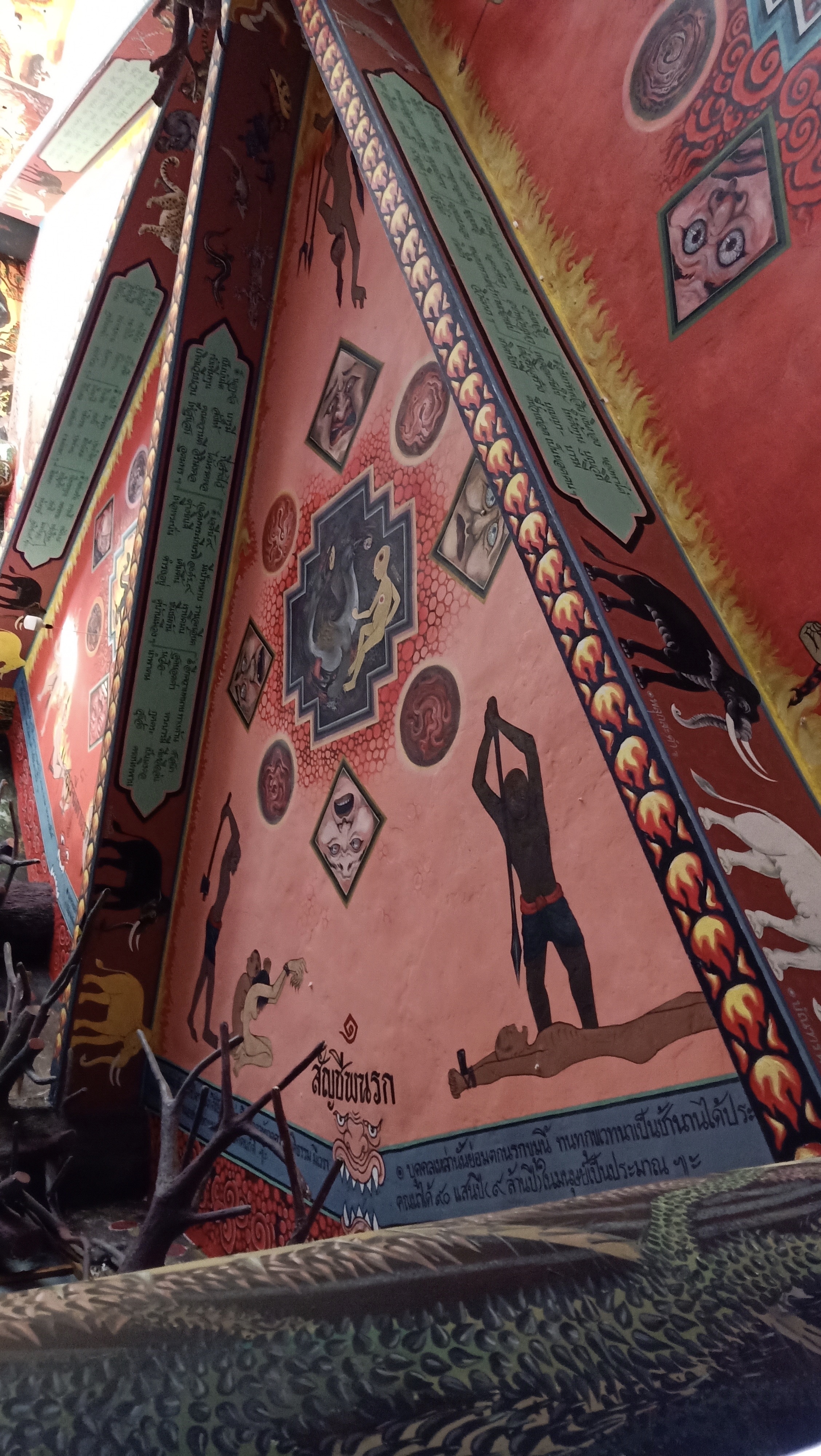 Ref siste lokale tempel vi har vært innom så finnes det et sted med straff også om man ikke er snill, og ikke noe unikt slik sett, da mange templer har disse skildringene til advarsel om hva som venter om man ikke oppfører seg: