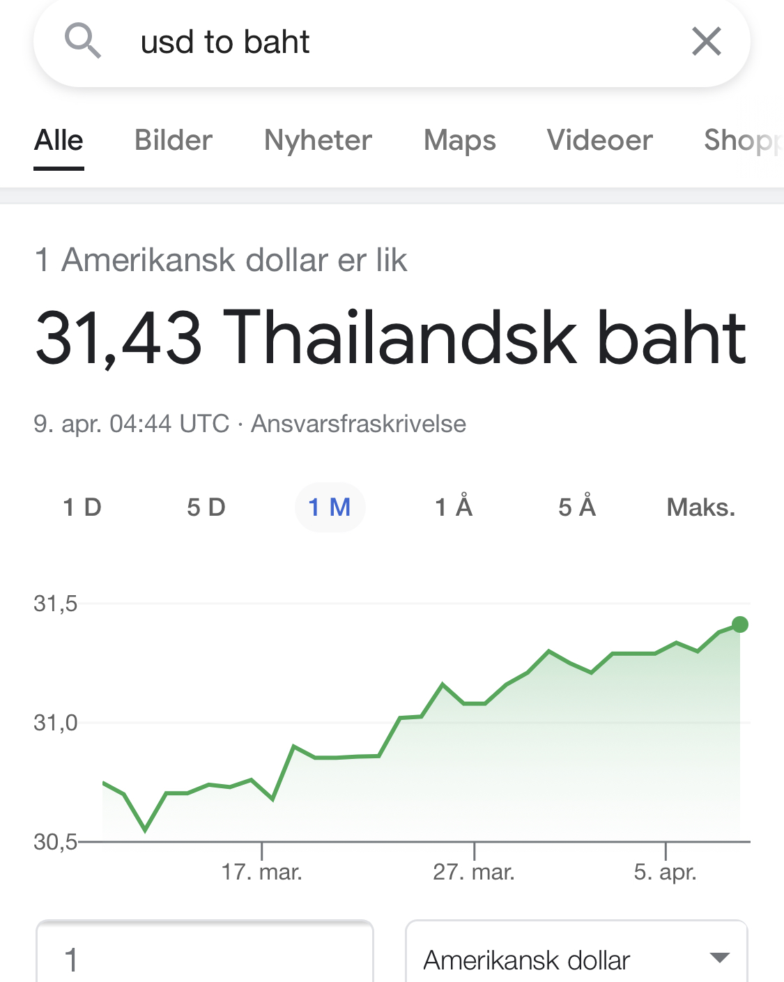 3,64 er kursen på overføring idag for Nok Bangkok Bank. Sek 3,595 til sammenligning og det kan vi like!