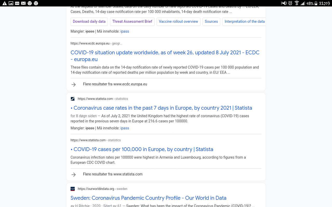 wiking skrev: 09 jul 2021, 23:24 Og det spørs jo om ikke rapporteringen av bivirkningene er under rapportert.