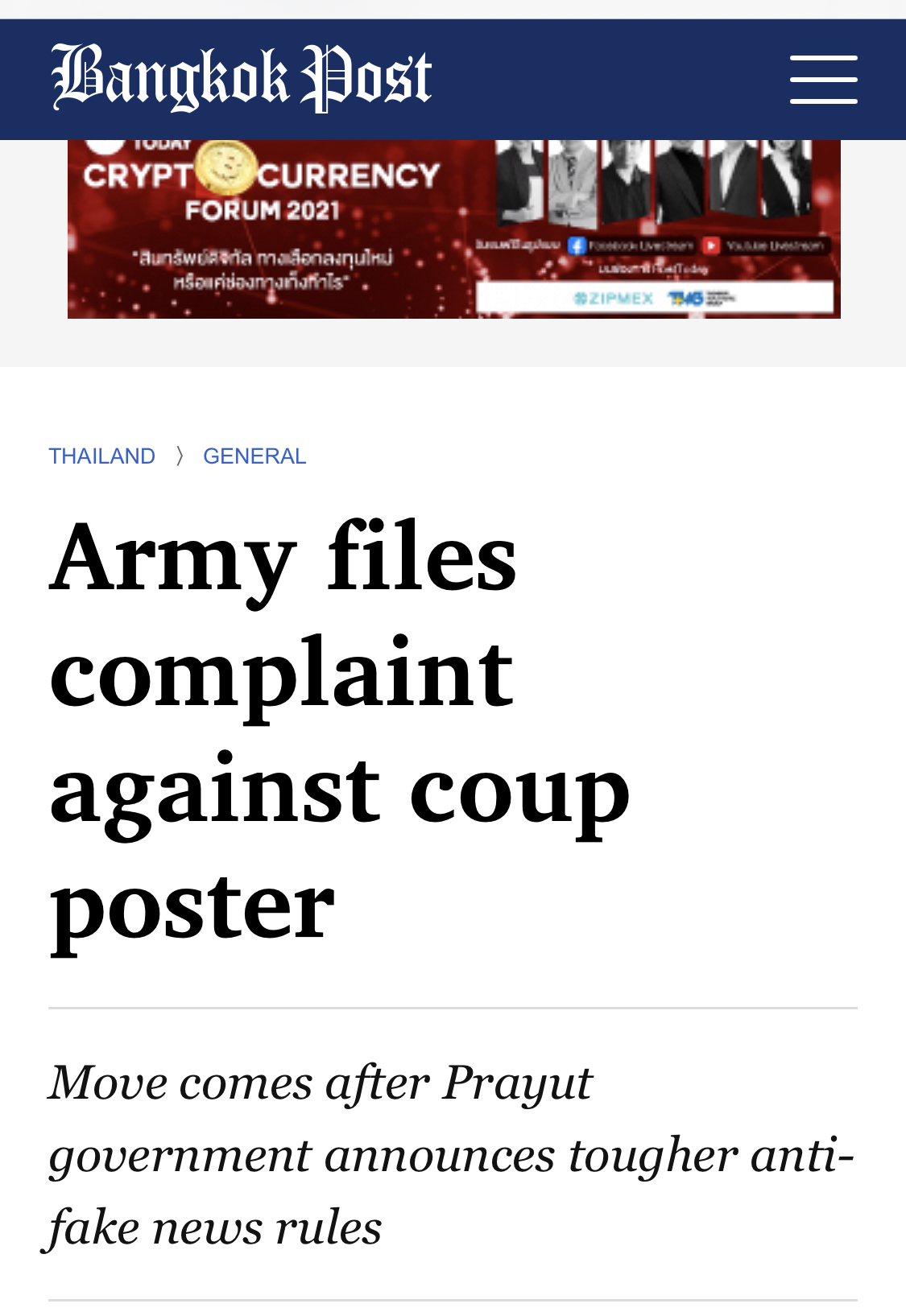 Phay skrev: 30 jul 2021, 12:20 I disse vanskelige tider med covid og økonomisk nedtur for Thailand, så begynner ryktene om nytt kupp å svirre blandt thailands elite igjen. Spørsmålet er om de har nok støtte blandt de i strategiske posisjoner til å gjennomføre ett nytt vellykket kupp. Vil ett nytt kupp føre til nytt valg? Det store spørsmålet er og blir om Thailand kan komme seg igjennom nye reformer og ny grunnlov uten å måtte ta landet inn i en ny kritisk situasjon med nye blodige konflikter. Nikkei Asia ser litt overfladisk på det i denne artikkelen.