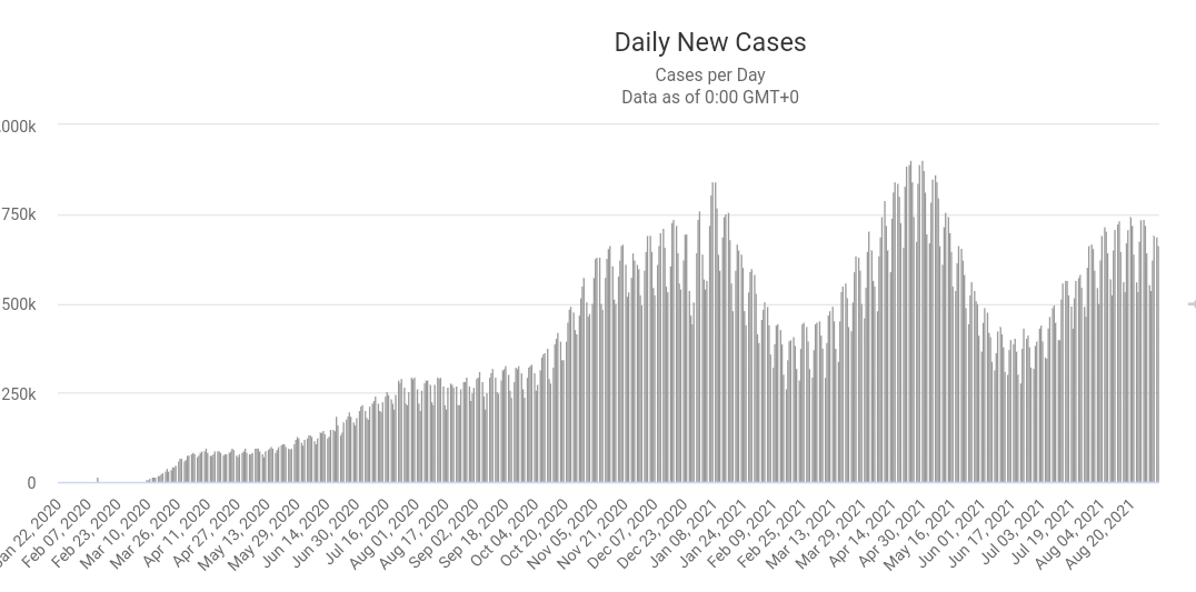 Samtidig ser det ut til at mange land får styr på tallene og 4 bølgen . En får håpe tallene fortsetter å gå nedover.