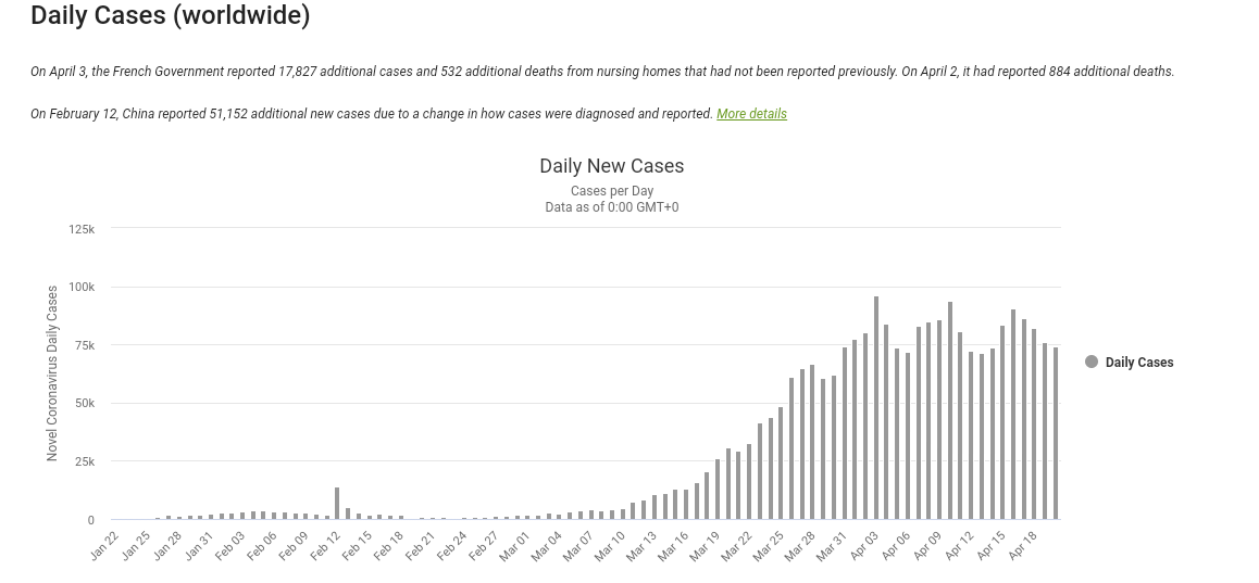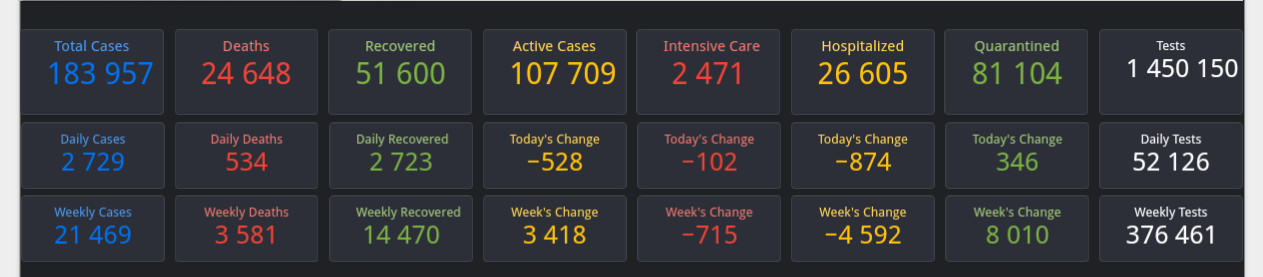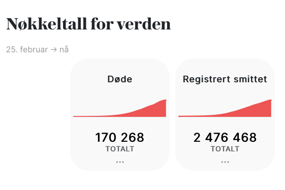 I dag var det etter denne målingen 2.476.468 som var registrert smittet, den 21 mars og kun en måned siden så var det kun 304.621 som var smittet.