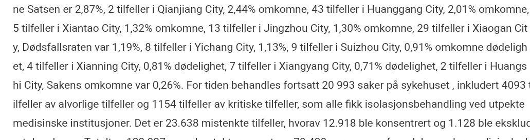 27 døde, i et distrikt som hvor myndigheten nå også legger ut lister på kinesisk som jeg ikke fortår