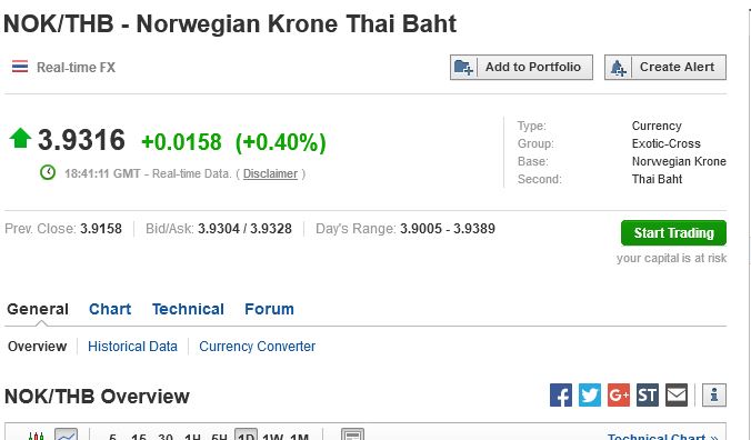 Norsk krone mot Thailandske baht.