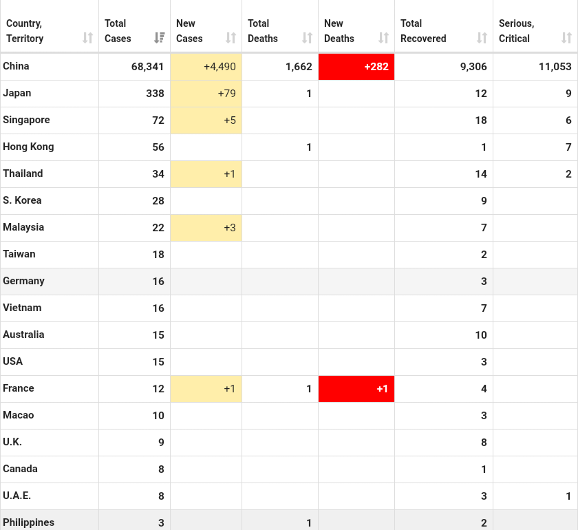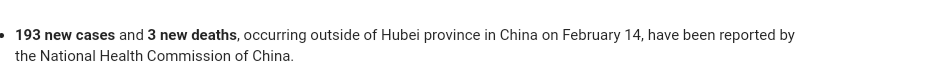 Gårsdagens dødsfall var vist bare 3 stk utenfor karantenesone, og det franske dødsfall i dag var en 80 år gammel Kinesisk turist. Samme alder som den Japanske kvinnen for noen dager siden.. Men mange nye på den Japanske listen i dag, så,får en se hvordan de med beslutninger reagerer.Kinesisk UD hadde en lang pressekonferanse når US tro til med tiltak, hevdet de drev med feilinformasjon og skapte angst,