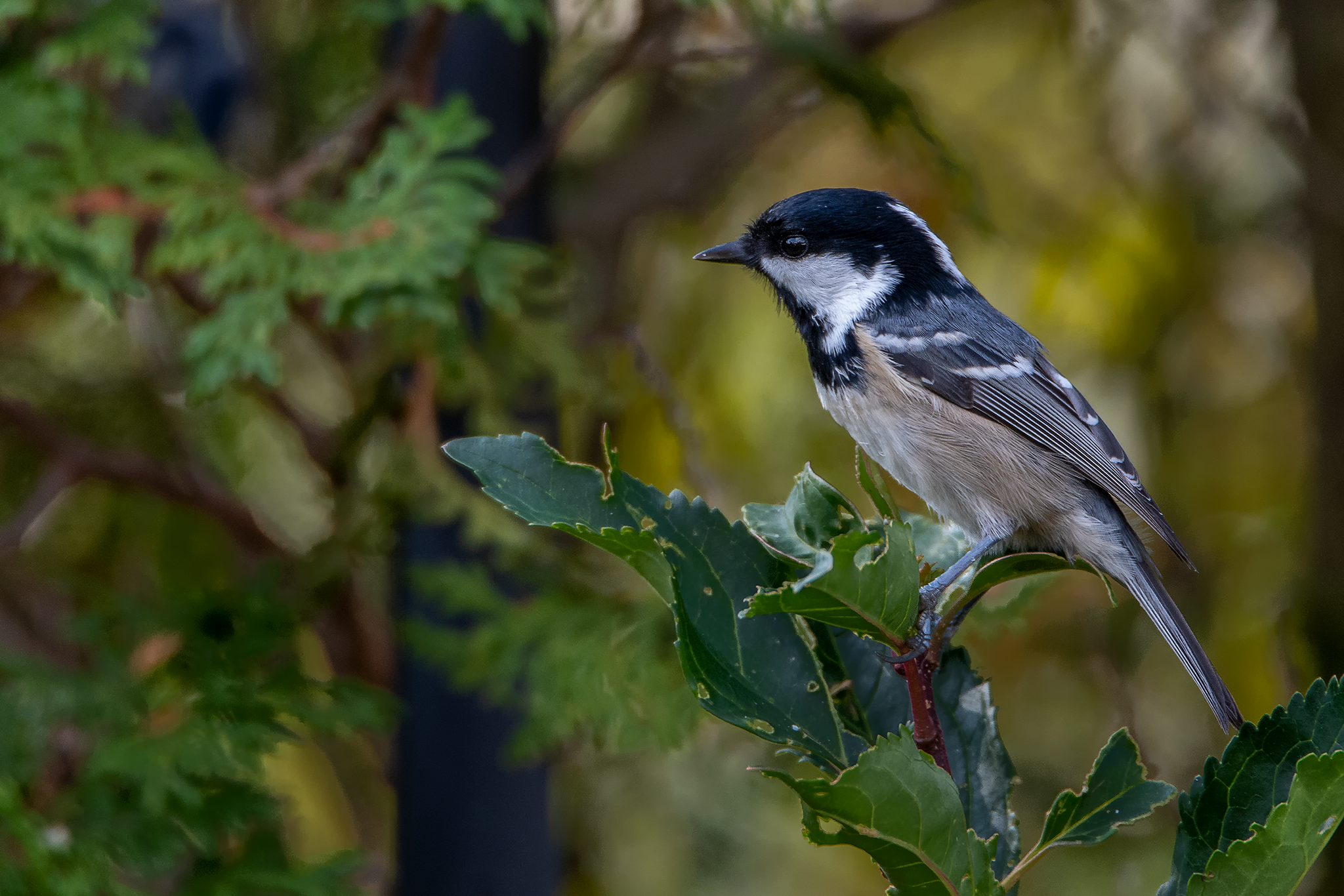 Får jeg opplastingen til er dette en svartmeis, en av våre minste fugler.--