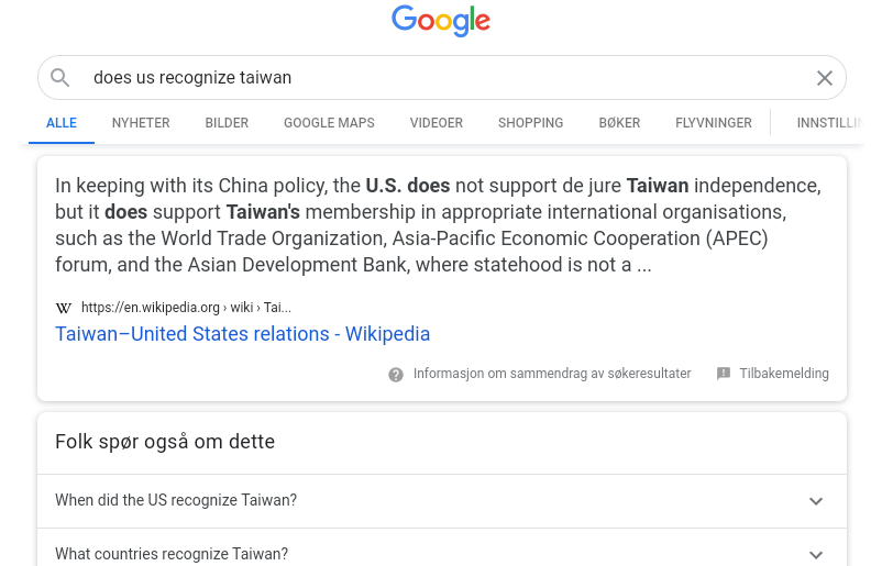 CAT skrev: 22 jul 2020, 23:18 Helt enig, har sett meg lei av et brutalt kommunist regime skal få ture frem i verden akkurat som de vil. At den norske regjeringen ble rævslikkere og ba om unnskyldning for fredsprisen til den dissident er en skandale. Og det bare for å levere no fisk. De skulle stått på sitt, idag når det begynner å brenne under føttene til regime, vill norge fått masse kred for å ha stått opp mot Overmakten og tyrannen Kina, men vi feiga ut.