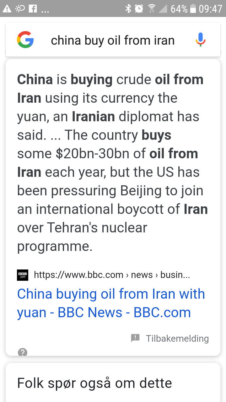 Reinkarnert Pelle skrev: 23 jul 2020, 09:37 Antar det er en del Norsk olje i Kina produktene ?