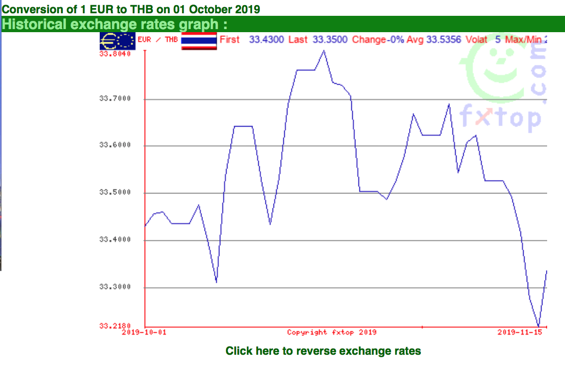Da har vi kommet godt over halve året, og er inne i det siste kvartelet året 2019. Krona den går både opp og ned mot baht for tiden. Som vanlig. Men tross alt så holder krona seg ganske stabil mot baht, selv om den ikke er så sterk som før………. Men litt styrket krona seg denne mandags morgenen.