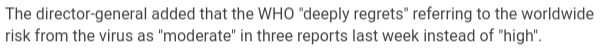 Det har ellers versert et intervju med presidenten i WHO de siste dager, hvor han åpenbart gir utrykk for at han/angrer dypt og situationen kanskje skulle vært ærklært på et høyere krisenivå.
