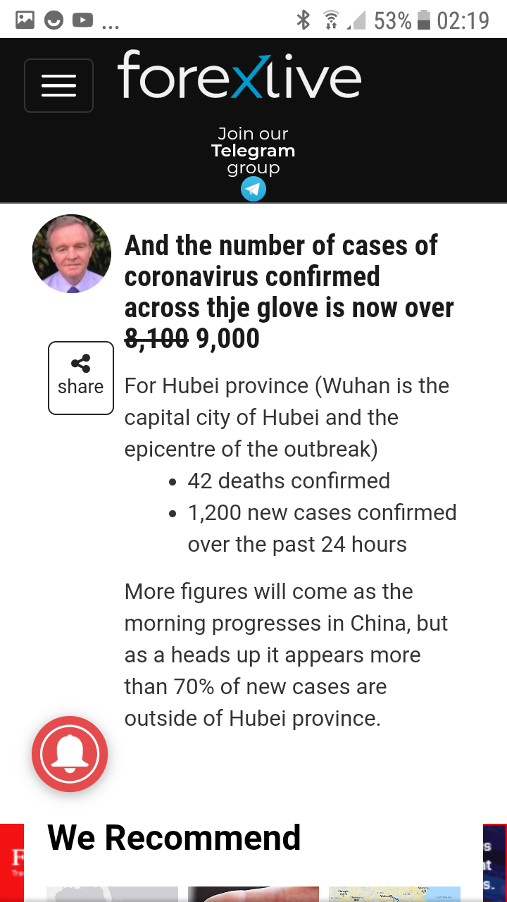 Nå er det slik jeg forstår en aksept at de kinesiske tiltakene ikke kommer til å stoppe spredning.Vedrørene tiltak fks mindre fly, så skal det kanskje sees i sammenheng med noe jeg leste i en amerikansk post.Phay skrev: ↑30 jan 2020, 13:46 Det som er skremmende er at svineinfluensaen ble til de grader hauset opp, og så var det så og si ikke merkbart utover vanlig influensa. Minstejenta ble mest syk, mens vi som var litt eldre ble mindre syke. Jeg var bare noen dager litt uggen som manflu.