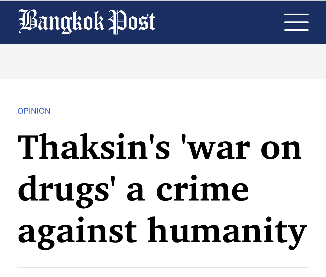 dette var thaksins baby!!Geir Rasch skrev: ↑04 apr 2021, 06:50 Det blir litt feil å legge all skyld på Thaksin for narko-rassian. Det må ikke glemmes bakgrunnen for det. Det ble sterkt oppfordret av en person det ikke er lov å omtale i en slik sammenheng.