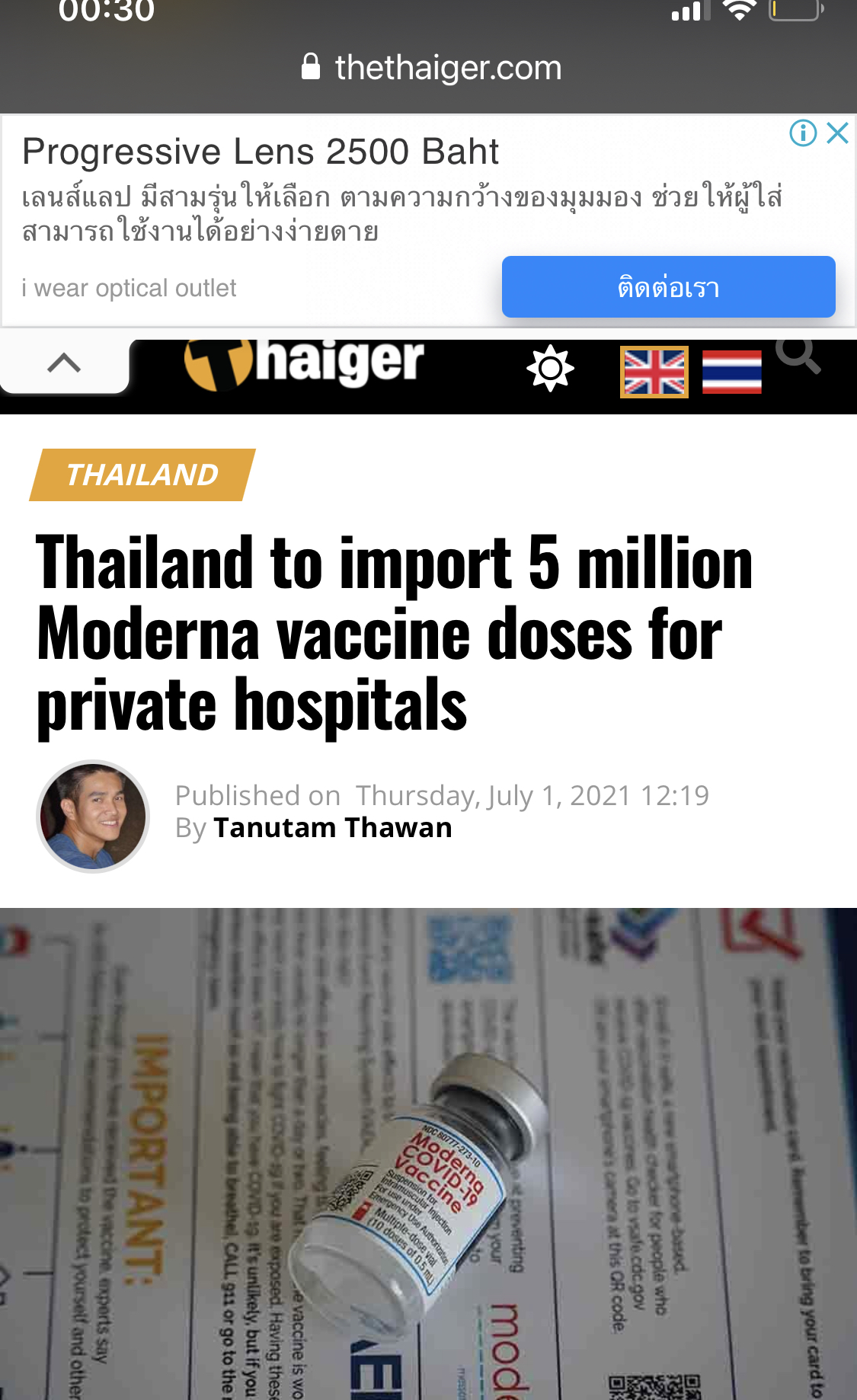 Moderna is among the top alternative Covid-19 vaccine choices in Thailand. Private hospitals opened reservation for the jab since earlier this month. Phyathai 2 Hospital in Bangkok, for example, is selling the vaccine at THB1,650 per dose. The hospital said that they were sold out in less than a minute after reservation opened on July 8 at noon
