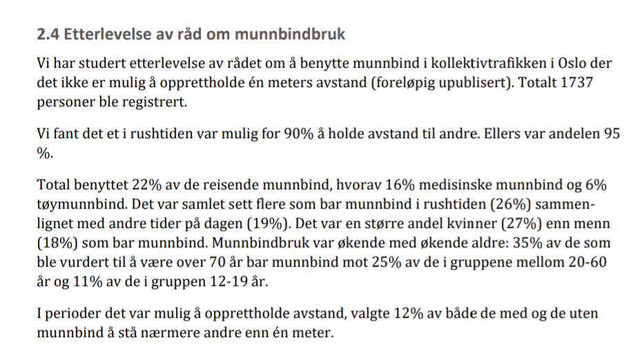 Ikke så lenge siden vi fikk anbefaling av munnbind. Men Fhi har fått med undersøkelse allerede.