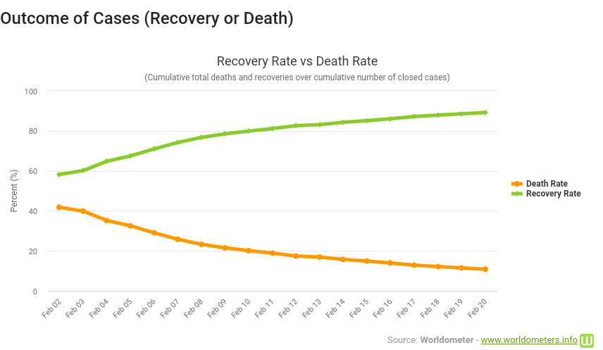 Flere og flere blir friske oppe i et noen tusen siste døgn(siste tall fra Kina er 22690, men skifter hele tiden) , tall viser jo ikke nødvendigvis hvem, men nå minker det også på tallene alvorlige/kritiske og de har kanskje et litt lengere sykdomsforløp.?