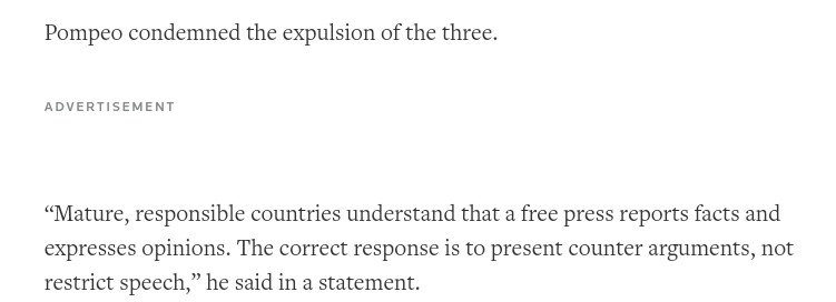 Det ble jo også tiltak tilbake mot Amerikansk presse i Kina, 3 Wall street journalister mistet pressekredensiale og visa.(angivelig for noe annet)