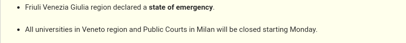Nå er det erklært "state of emergency"i første del av Italia. 6 uker,før deres turistsesong starter for sommeren.