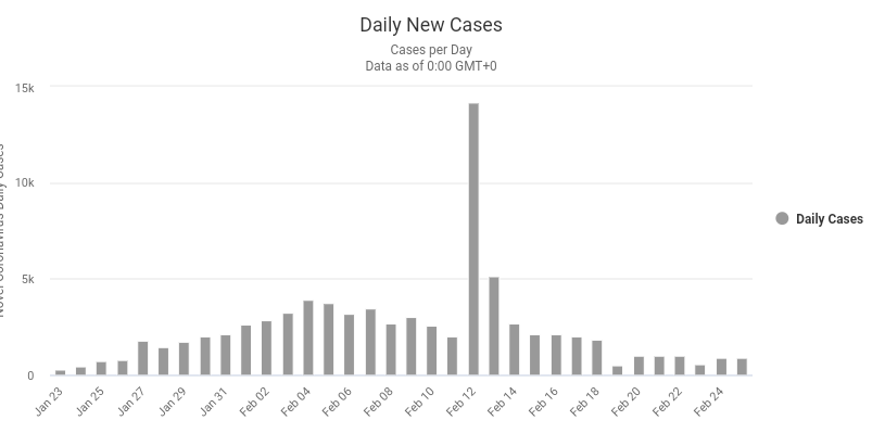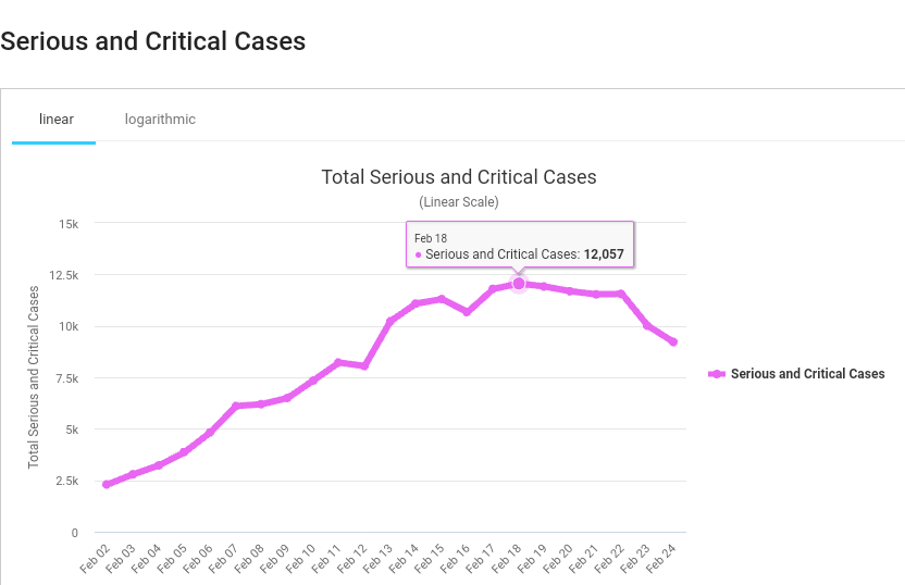 Men tallene er forløpig stabile selv om nå utenfor Kina er med, så betraktiøig redusering der. og utvikling friske vs syke bare øker.