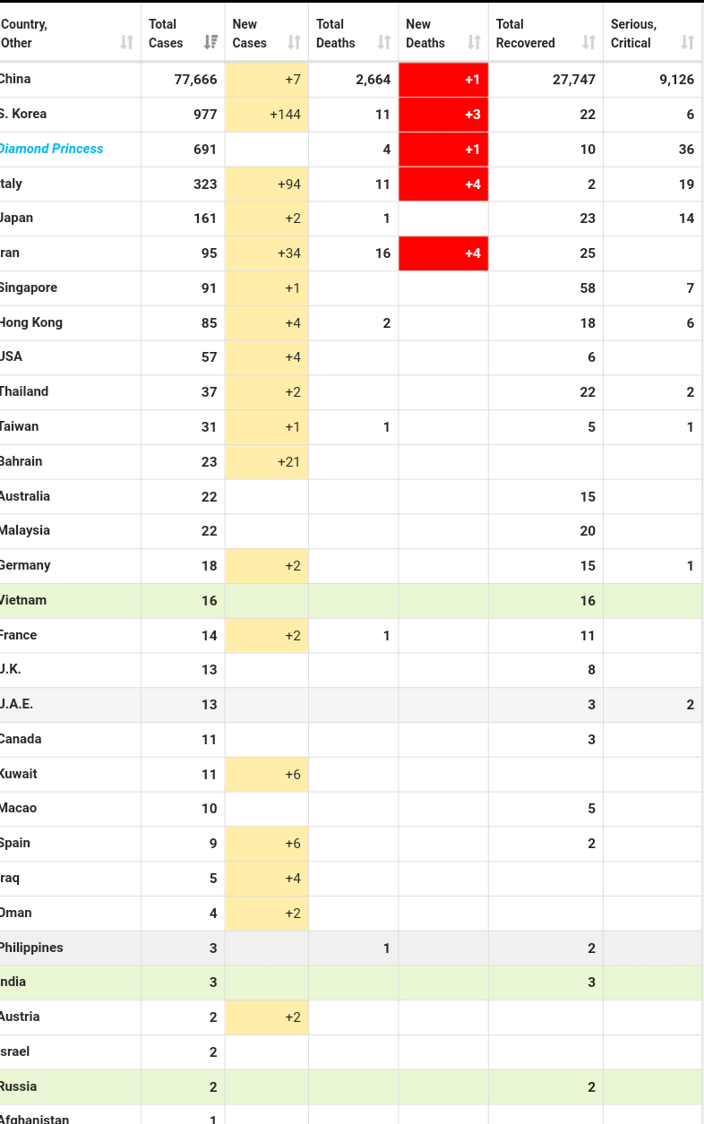 Ja og her er litt om dagens tall nå sprer det seg også til hva som vel reelt kan kalles krigssoner(Iran,Irak)osv.Selv er jeg litt i tvil om at en slike steder nødvendigvis lar sykehusene fylles opp av respiratorpasienter mens andre muligens skuddskader og slikt ikke får plass.