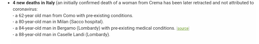 Så det blir vel litt korigering senere. Men de samlete tall ser nå bedre ut selv om de er mere spredt. Karantene i Italia. Det er store tall i forhold til smittede der Men ser det er mange mellom 80 og 90 år.Samtidig er det vist en cancerklinikk som er en fellesnevner for mange tilfeller der.