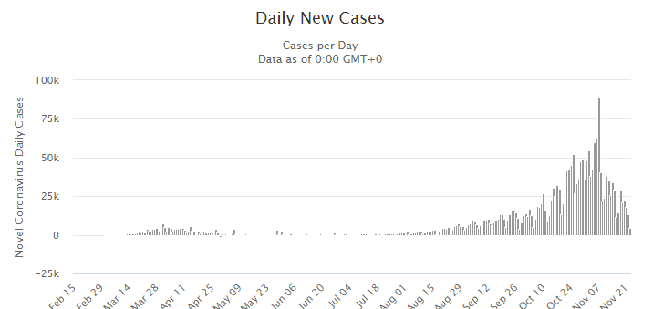 Amerikanske medier varsler økte tall i forbindelse med 'Thanksgiving, julehandel, og familiefeiringer. noe som vel igrunn kanskje er same same but different.
