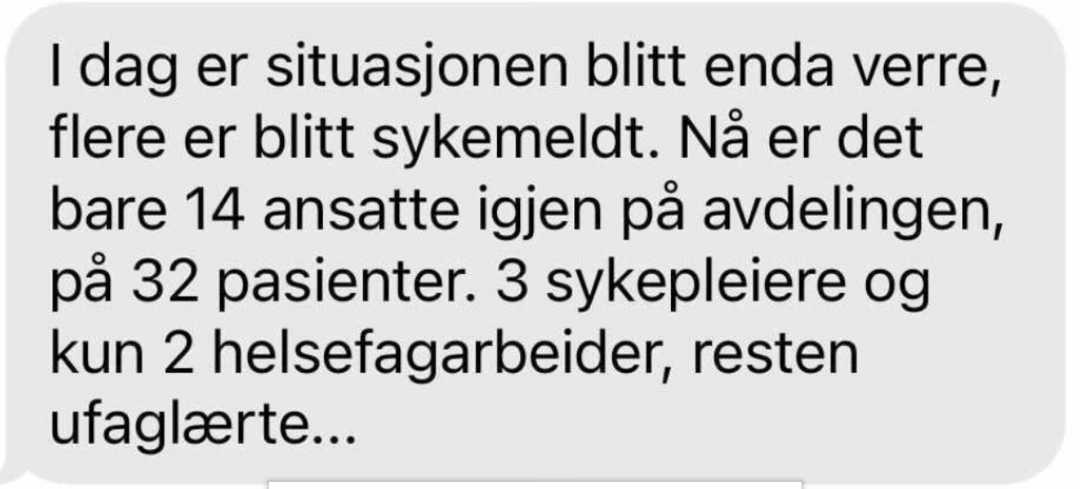 Et tilegg til tidligere svar om ståa i deler av helsevesenet. Om slikt er verdens beste så får en være glad en ikke skal pleies andre steder.