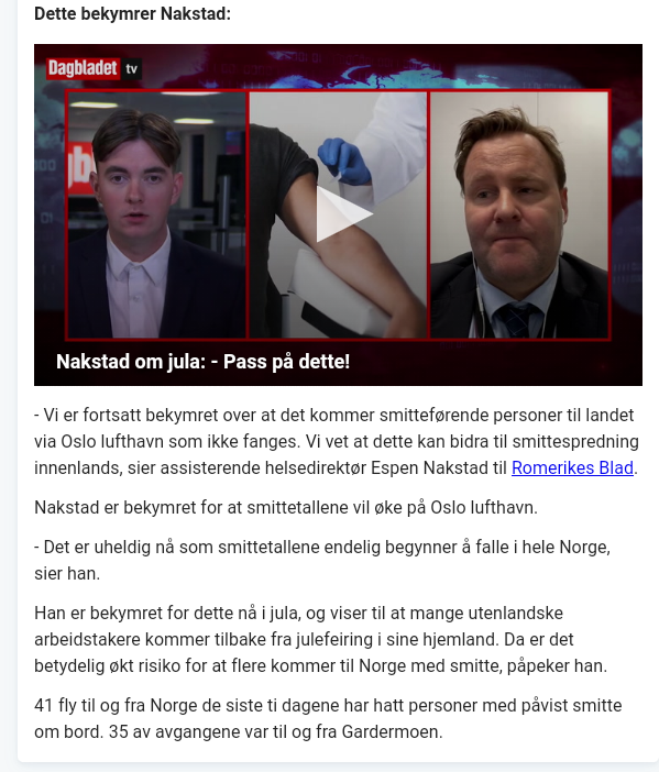 Etter 1 uke med unntak på unntak fra karantenehotel kommer Nakstad med sin bekymring om fremtidig importsmitte når de utenlanske gjestearbeider kommer tilbake etter juleferien.