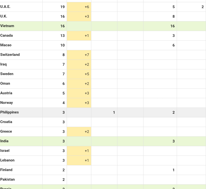 Asiaterene fortsetter så får en se etterhvert men det virker ikke som spredningen øker der så mye som i Europa.(utenom S korea)