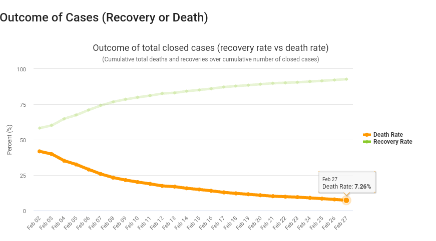 Ja resten av verden får mere og mere, men realiteten er vel at jo flere som blir syke utenfor Wuhan , jo færre dør av den samme sykdom.