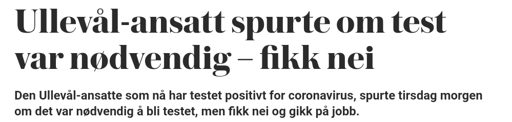 Vi har ellers fått 6 tilfeller og mulig litt flere komer fra Ullevål sykehus , en får se an tester av de 4 som får test på sykehuset. Men med ca 5000 ut og inn av porten om dagen så kan det kanskje dukke opp flere derifra også senere.