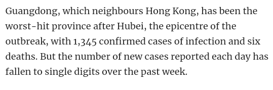 Den nærmeste region i fastlandskina er Guandong, har ca en og enhalv gang Italia i folketall. De hadde ikke mere enn litt over 1300 tilfeller .