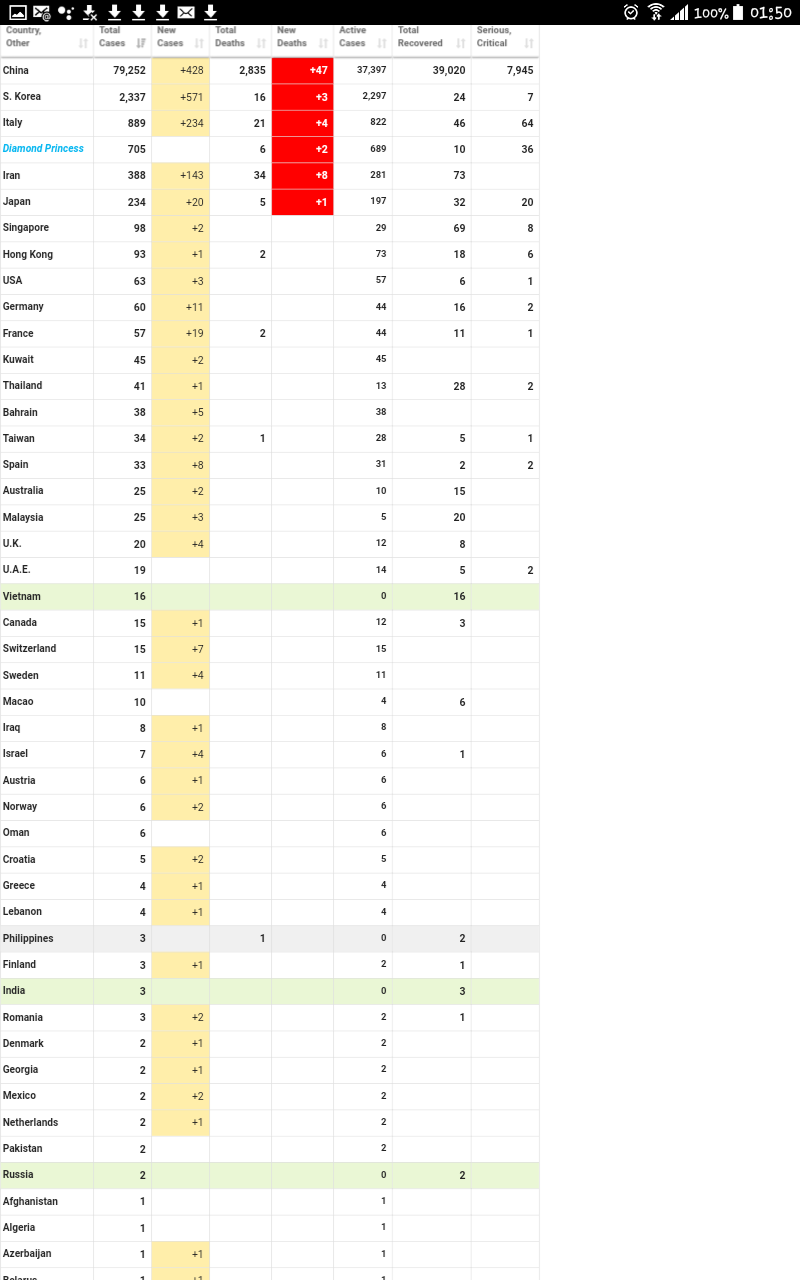Fortiden minker det i samlet men øker mere utenfor Kina, var vel nogenlunde 50/50 i går i samlet registrerte og avklarte,saker. Ca 42 000