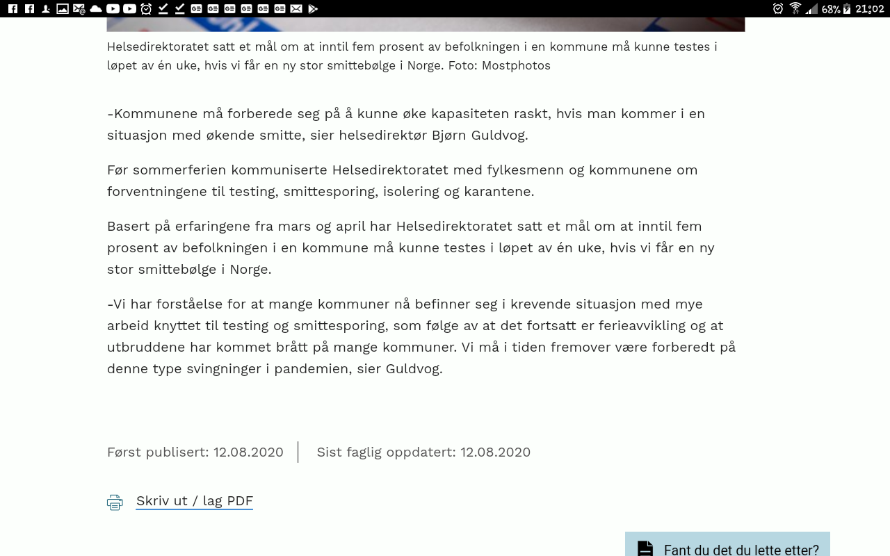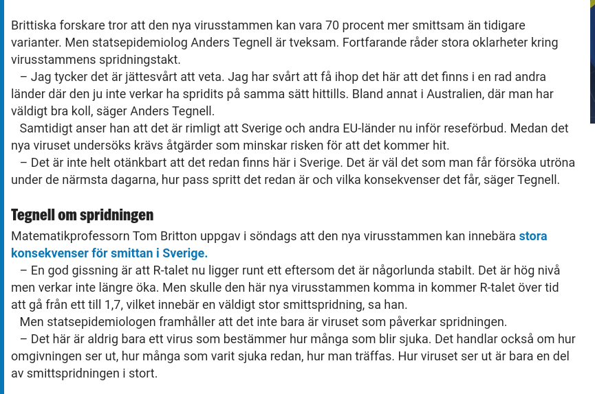 Her til lands er det vært en ræva håntering av covid pandemien.( på nasjonalt nivå).Alle som har fulgt dette med «litt kritisk» blikk ser at vi feilet fra første dag.Tore Bustad skrev: ↑21 des 2020, 12:27 Hvor har du det fra at det er så dårlig stelt her til lands?