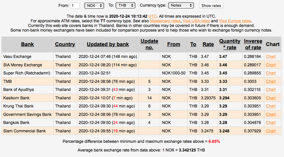 Da hadde Krung Thai Bank beste kurs på TT overføring. Bangkok Bank hadde den dårligste kursen, og alle kursene er i skrivende stund.......