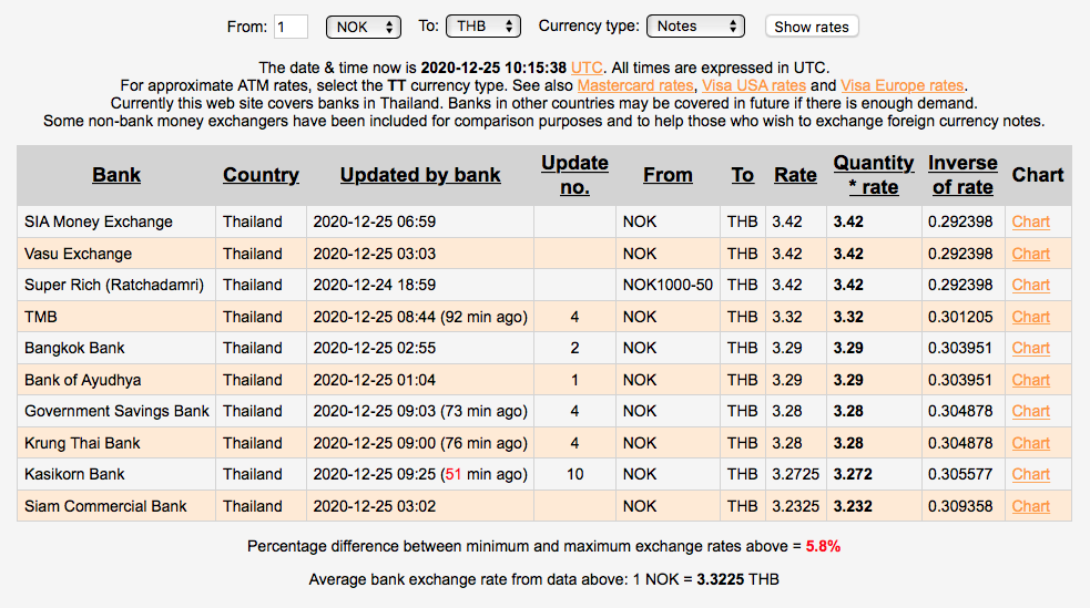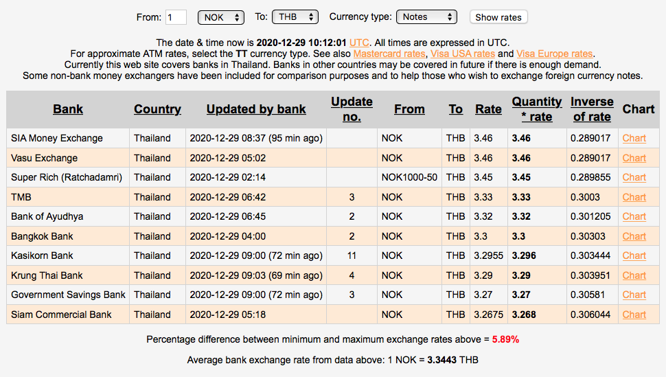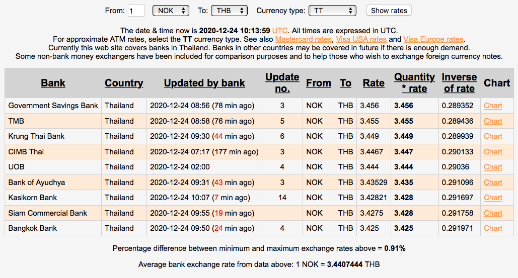 Da hadde Krung Thai Bank beste kurs på TT overføring. CIMB Bank hadde den dårligste kursen, og alle kursene er i skrivende stund.......