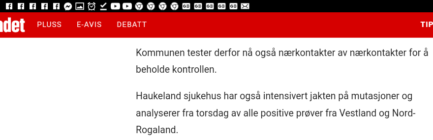 Ukjent smittevei der også. I Oslo vle idag over,200 busser innstilt. En kan undres om det snart stilles spørsmål om det finnes måter til å unngå at det fortsetter .