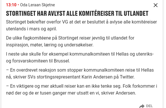 Phay skrev: 05 mar 2020, 08:44 Tror vi skal stikke på ambassaden med visumpapirer til madammen, så vi har en dør ut for begge om nødvendig. I det minste slipper vi å bli separert over lengre periode om det skulle eskalere, og kan reise sammen.