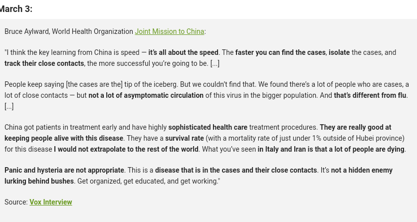 At WHO etter å ha vært i Kina og studert 14 dager sier i sin rapport at veien til suksess er å stanse så tidlig som mulig synes jeg også går litt mot