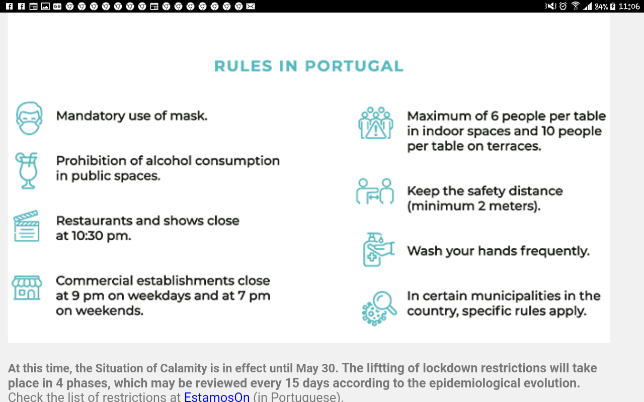 Landsdekkende maskepåbud, ute og inne , 2 meters sosial distansering, vistnok 1,5 meter mellom liggeunderlag på stranden og 3 meter mellom gruppene. Begrensinger på antall i gruppene , bøter på ca 100 euro.