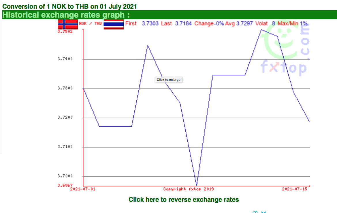 Veksling av kontanter er på 3,52075 baht, TT overføring er på 3,67248 baht.