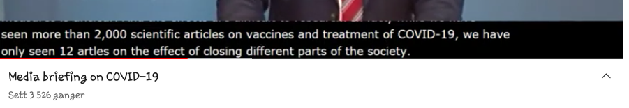 Det er vist ikke mere en 12 stk om effekten mens det vist ok er 2000 artikler om vaksinens efekt. Da hjelper sikkert ikke tall fra UK om hvor mange vaksinerte som er smittet eller døde.I går var gjest han på gårsdagens pressekonferanse i WHO. Hvor han var på link fra Norge.