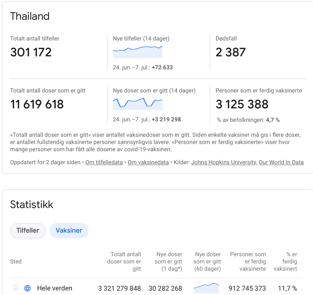 Antall vaksinedoser på google statistic, og ferdigvaksinerte