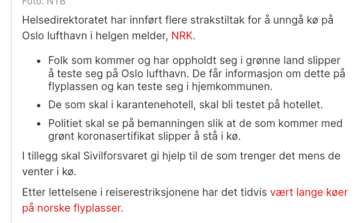 Detter,er,jo feriesteder for mange Europeere. En test og folk får reise videre om de må teste. Eller kanskje 2 døgn karantene som det skal klages over.